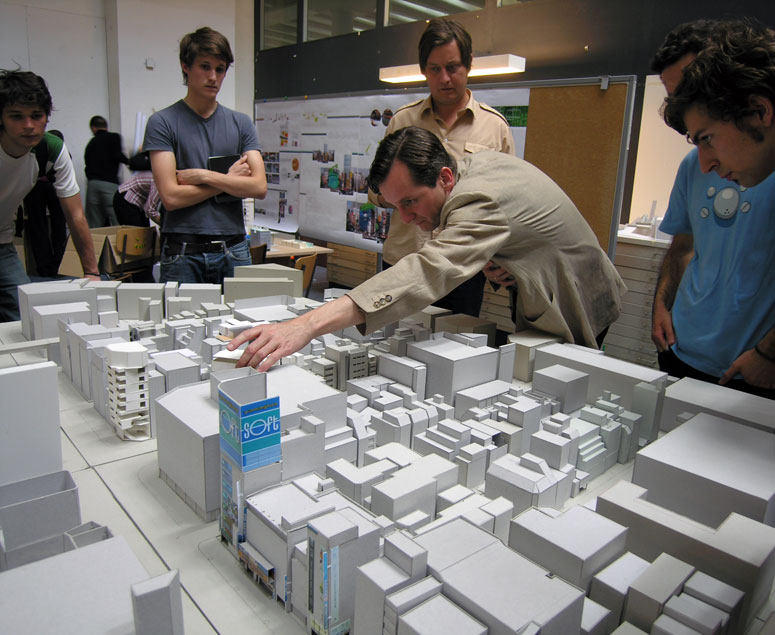 Group presentations with invited guests for the discussion of the current progress of the schemes take place every 3-4 weeks. They provide students and tutors with an overview of the current status of all projects in the studio, and offer an opportunity to discuss developments and to suggest how to proceed. In this way, the successful communication of the design process, an important ability for architects to develop, is trained in a natural manner. During intermediate presentations, a large volume of sketchy, unrefined materials is shown and discussed in order to feed the discussion of project development; only at the stage of the final presentation are clearer guidelines for presentation format and materials set down. |