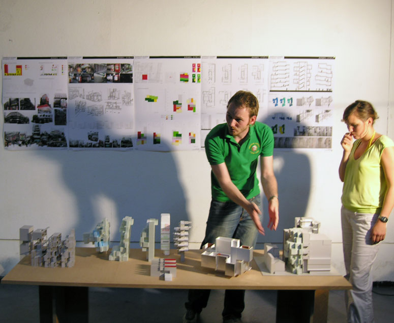 Group presentations with invited guests for the discussion of the current progress of the schemes take place every 3-4 weeks. They provide students and tutors with an overview of the current status of all projects in the studio, and offer an opportunity to discuss developments and to suggest how to proceed. In this way, the successful communication of the design process, an important ability for architects to develop, is trained in a natural manner. During intermediate presentations, a large volume of sketchy, unrefined materials is shown and discussed in order to feed the discussion of project development; only at the stage of the final presentation are clearer guidelines for presentation format and materials set down. |